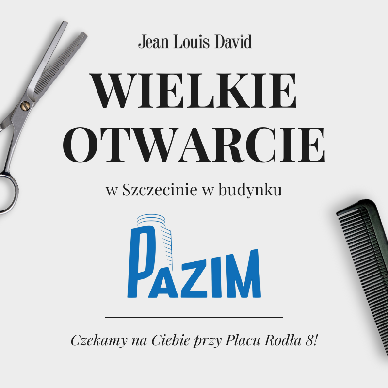 Szanowni Klienci! 28.09.2024 r. salon fryzjerski Jean Louis David w C.H. Galaxy przy al. Wyzwolenia 18/20 zostanie zamknięty, a następnie przeniesiony do budynku Pazim (obok C.H. Galaxy) przy Placu Rodła 8 w Szczecinie!