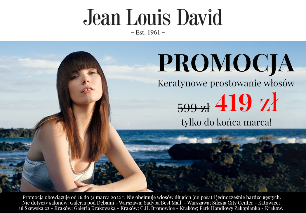 Od 16 do 31 marca 2022 promocja -30% na keratynowe prostowanie w salonach Jean Louis David!