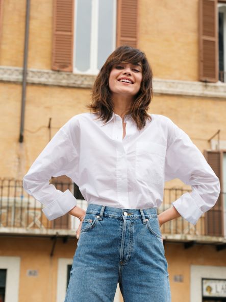 Strzyżenie shaggy i naturalne uczesanie podkreślające rysy twarzy.