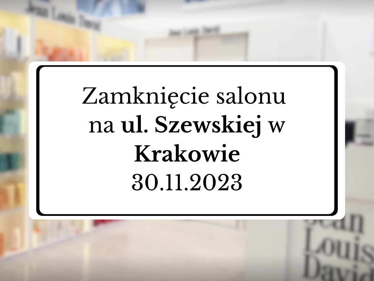 Szanowni Państwo, 30.11.2023 zostanie zamknięty salon na ul. Szewskiej w Krakowie!
